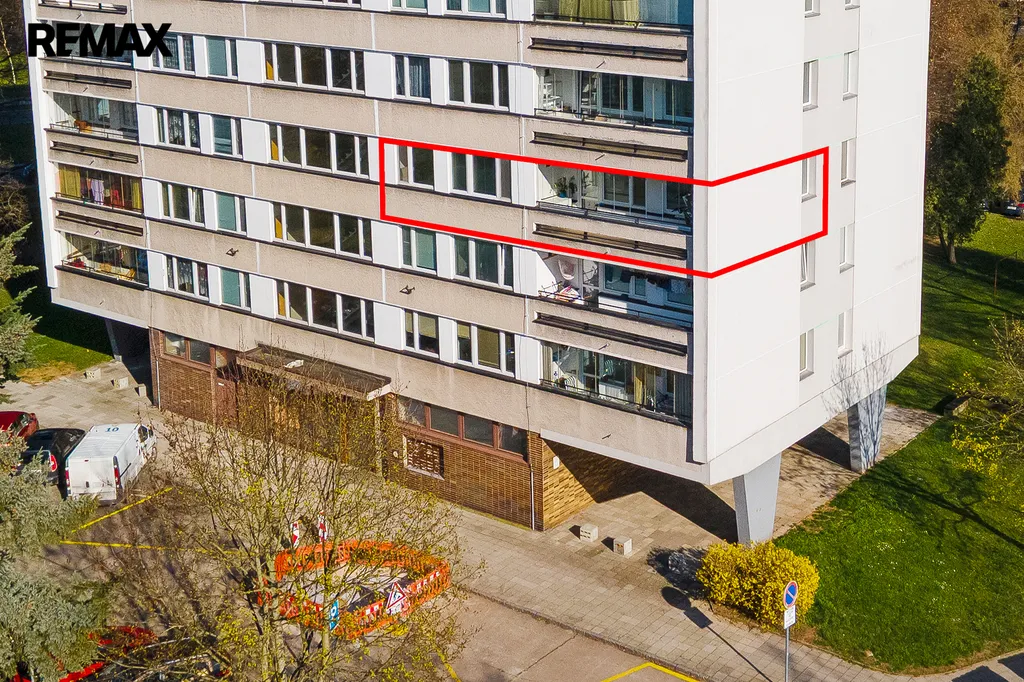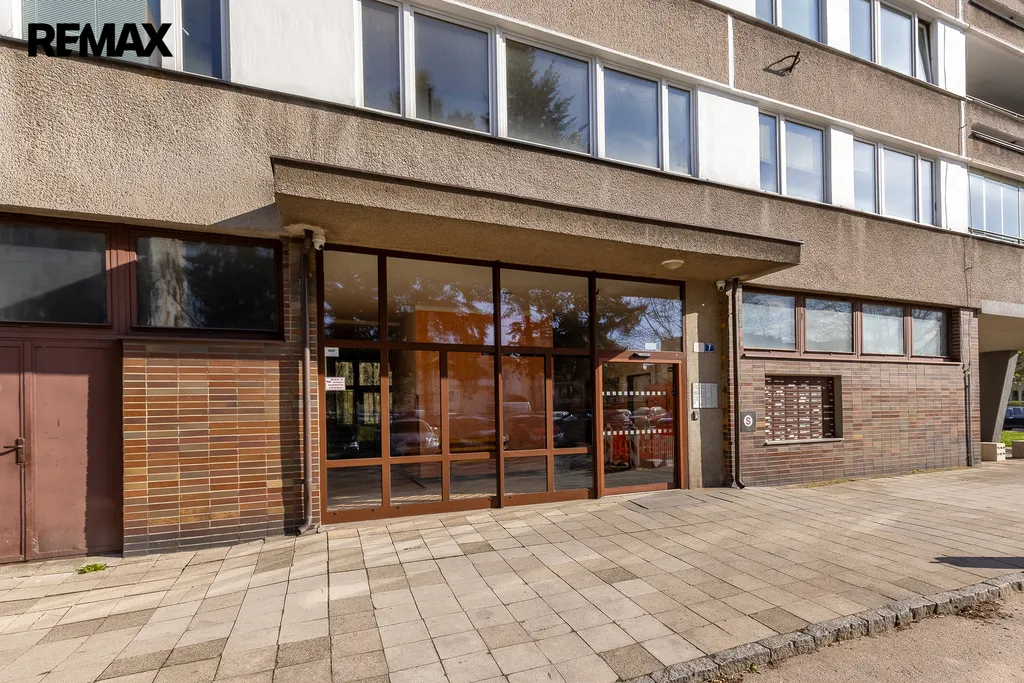 Byt je umístěn ve 3. nadzemním podlaží dvanáctipatrového, částečně revitalizovaného panelového domu se dvěma výtahy.