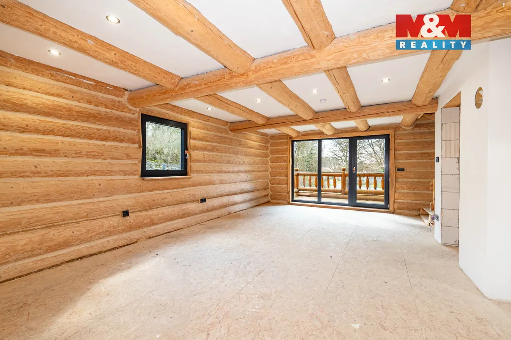 Nabízíme k prodeji stylový rodinný dům ve formě srubu z masivní kulatiny, kolaudovaný v roce 2024. Srub je situovaný v klidné obci Chřebřany u Vidic pouhých 11min od města Horšovský Týn. K využití je zde ideálních 95 m2 užitné plochy. Interiér vyniká dominantním otevřeným prostorem s kuchyňským koutem a východem na terasu v přízemí, v patře je další otevřená místnost a plánovaná ložnice. Při koupi nemovitosti lze převzít velmi výhodný úvěr s úrokem 1,99% p.a.. Nemovitost je napojena na vlastní vrt, odpad je řešen pomocí vlastní ČOV a vytápění zajišťují elektrická topidla, s možností instalace krbových kamen. Srub se nachází na pozemku o výměře 600 m2 a je ve fázi těsně před dokončením, což umožňuje budoucímu majiteli doladit finální prvky dle svých představ. Vhodné pro celoroční bydlení i rekreaci. Více informací Vám rád sdělí makléř. Rezervujte si svůj čas na prohlídkovém dni 15.04.2026. S financováním Vám zdarma poradíme.