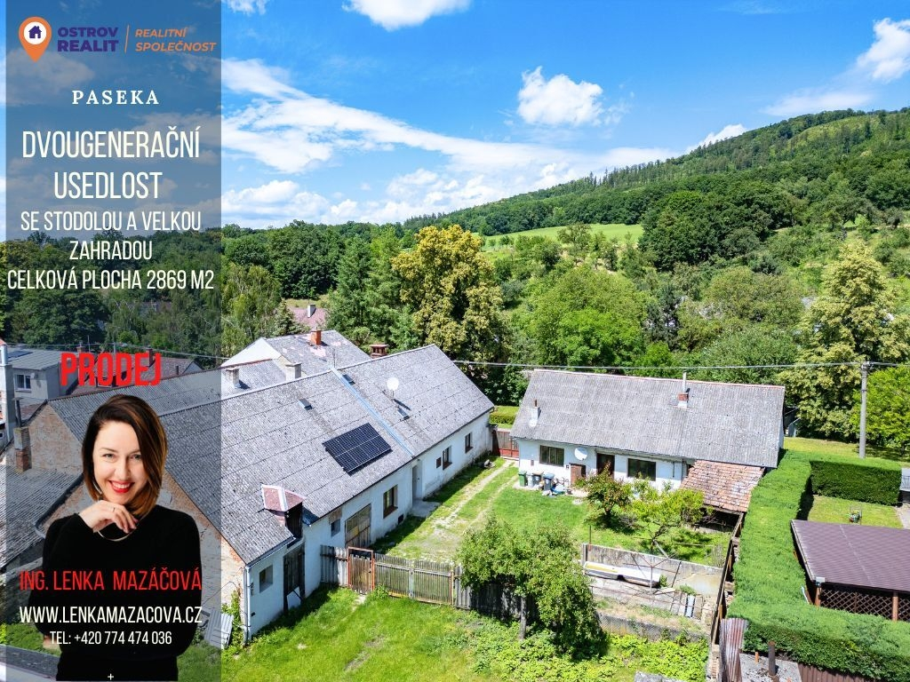 Nabízíme k prodeji krásnou dvougenerační usedlost v malebné obci Paseka. Bydlení se skládá z hlavní budovy a přístavby. Kromě toho se na pozemku nachází zachovalá stodola a velká zahrada s přístupem zezadu přes obecní pozemek.