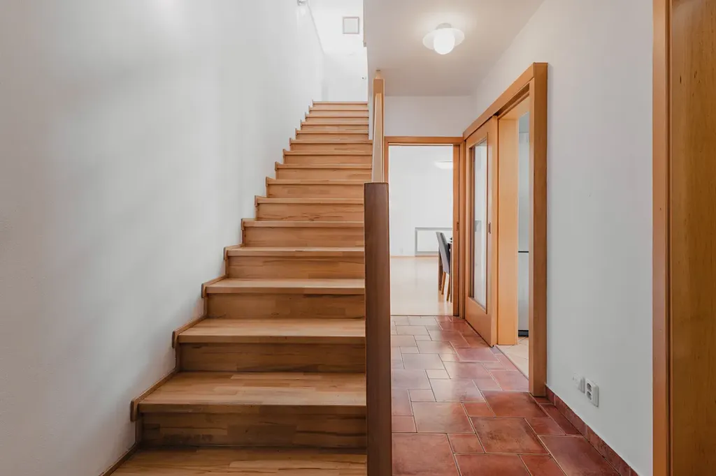 • Patro: tři ložnice, pracovna, prostorná koupelna s vanou i sprchovým koutem, samostatné WC a horní terasa.