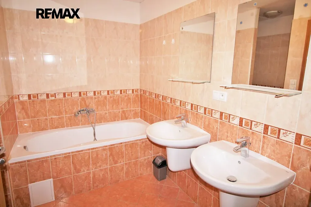Celková plocha prodávaných prostor je 166m2. Ve spodní části mezonetu se nacházejí 3 samostatné neprůchozí pokoje, koupelna s vanou i sprchovým koutem, dvěma umyvadly a toaletou. Další toaleta s umyvadlem je jako samostatná místnost.