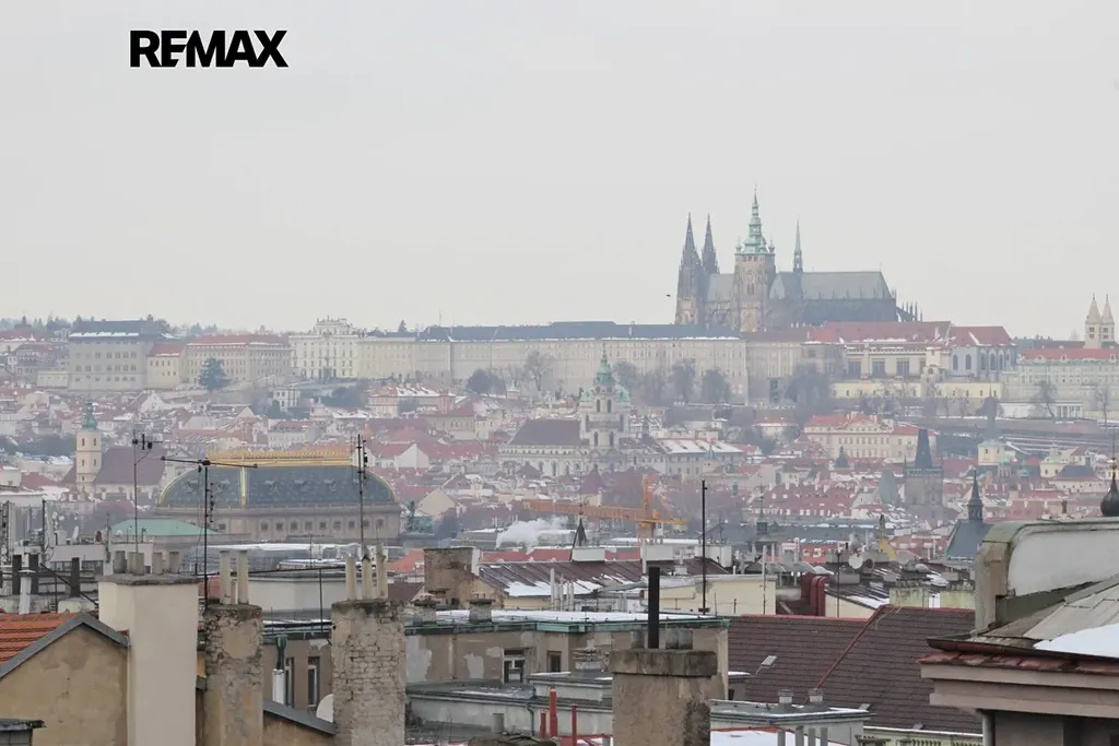 K velké místnosti přiléhá terasa s krásným výhledem na Prahu. Vstup na ni je přes velkoplošné francouzské okno. Jelikož jsou prostory situovány do vnitrobloku, neruší tam nikoho hluk z ulice. Dané prostory mají několik zajímavých bonusů - v nabídce máme i sousední byt o velikosti 155m2, takže je možné mít celé patro pro vlastní užívání a panoramatický výhled na celou Prahu včetně Hradčan, Petřína.
