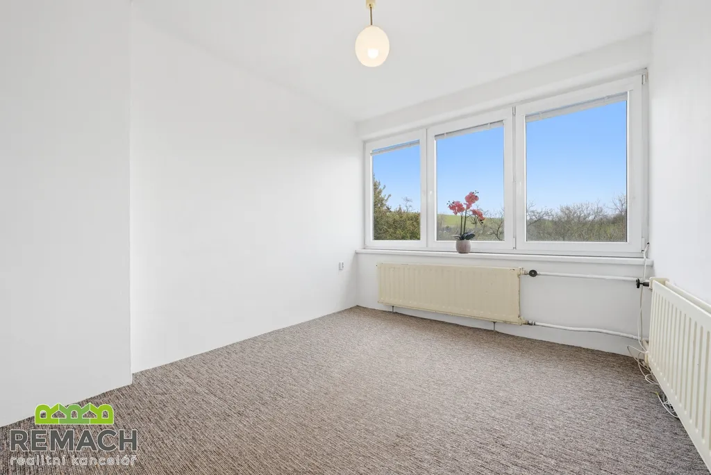 Dispozičně je řešen jako 4+1, kdy v horním patře jsou nyní dva pokoje. Jeden z nich nabízí vstup na balkon, ze kterého máte výhled do okolí. V tomto patře je možno ještě zbudovat další podkrovní pokoj.