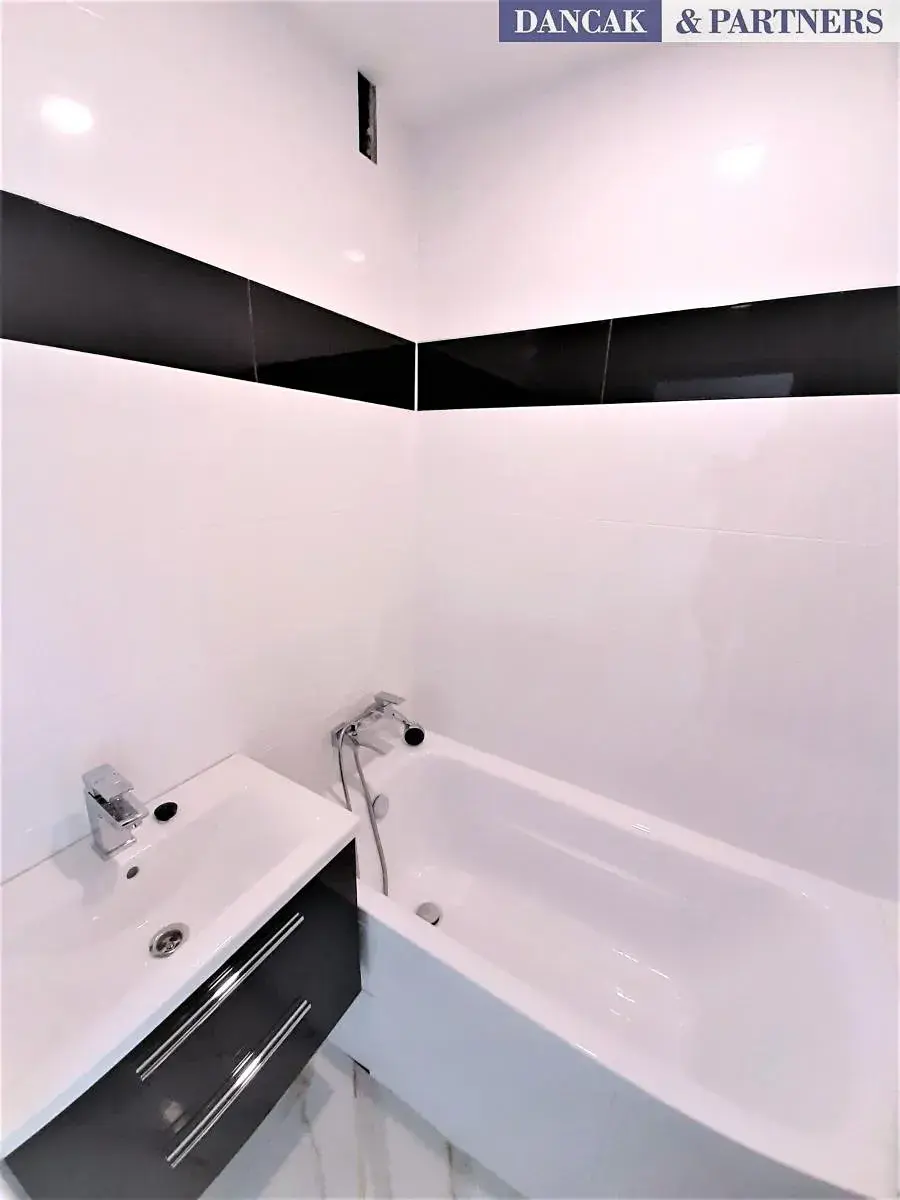 Součástí bytu je nová rohová kuchyňská linka vybavená elektrickým sporákem, indukční varnou deskou, digestoří a lednicí s mrazákem. Koupelna disponuje vanou, umyvadlem a moderními keramickými obklady, toaleta je samostatná. V pokojích nové dveře, svítidla, plovoucí podlahy, v předsíni a koupelně velkoformátová dlažba.
