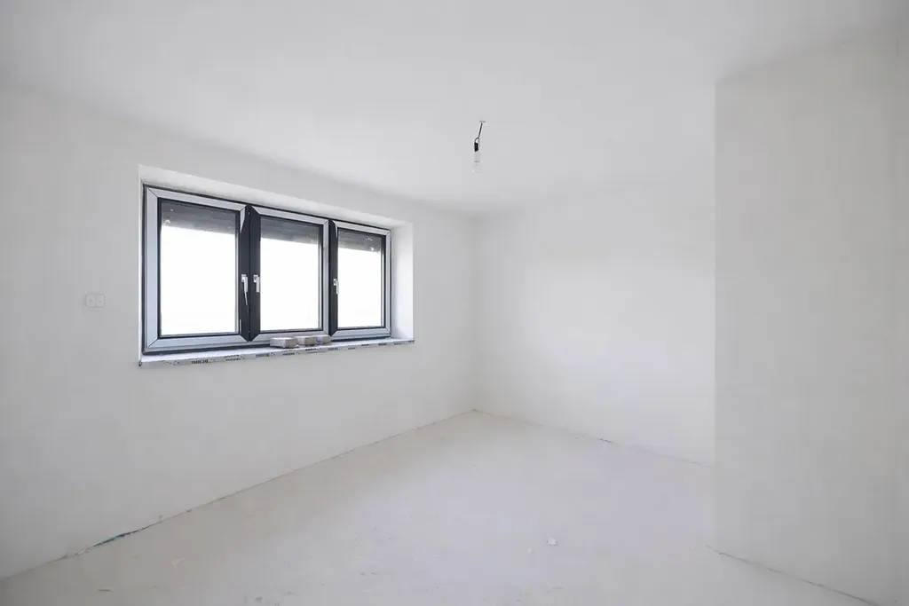 Dům je těsně před kompletním dokončením na klíč vyjma finálního povrchu podlah (vinyl, plovoucí podlaha atd.), obkladů, dlažby a sanity v koupelně a interiérových dveří.