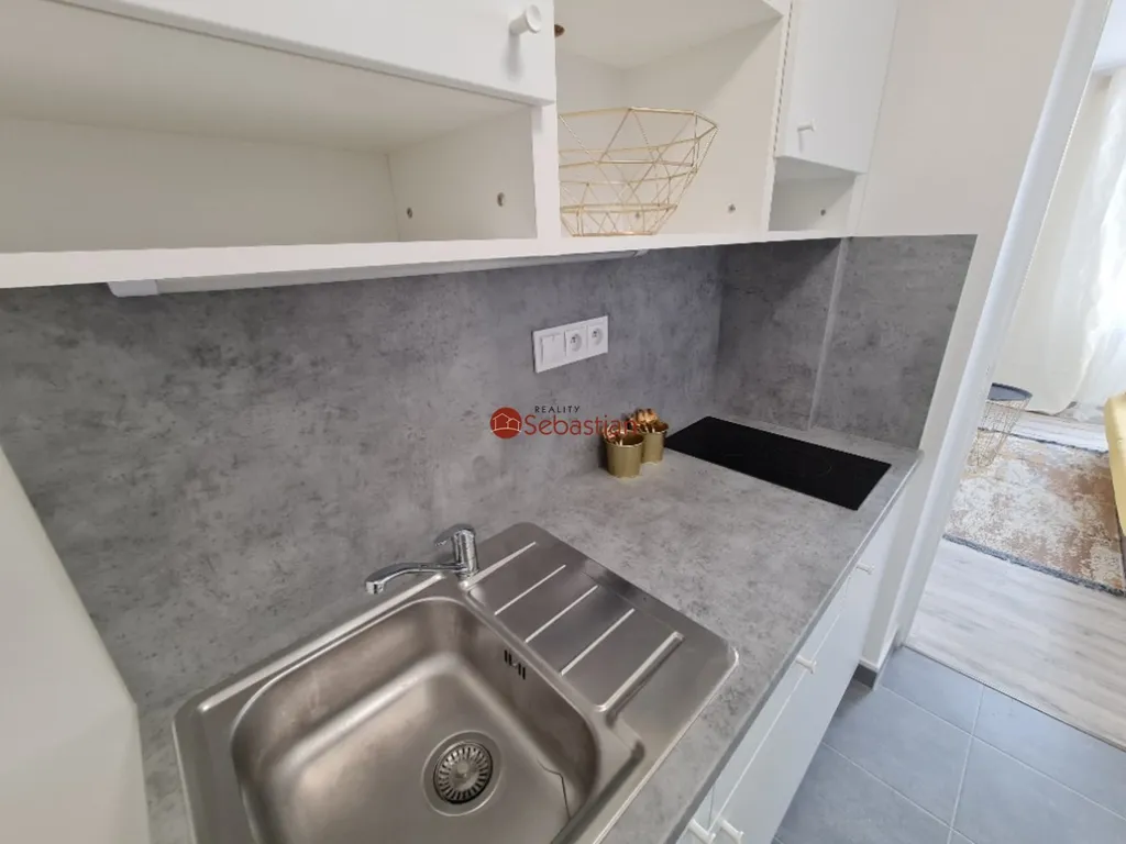 Byt 1+1 v 12. nadzemním podlaží po kompletní rekonstrukci o celkové rozloze 35,74 m2 orientovaný na východní stranu. Byt 1+1 v 12. nadzemním podlaží po kompletní rekonstrukci o celkové rozloze 35,74 m2 orientovaný na východní stranu. Byt je vhodný pro dvě až tři osoby.