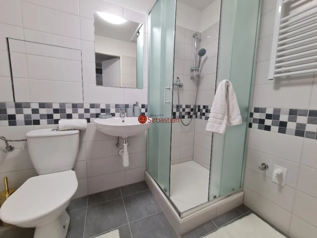 Celý byt prošel v předchozích letech rozsáhlou nákladnou rekonstrukcí včetně veškerých rozvodů. Dva prostorné samostatné pokoje, krásná koupelna se sprchovým koutem, WC a přípravou pro pračku. Moderní kuchyňská linka, malá sklo-keramická deska pro vaření, prostor pro vestavěnou myčku nebo ledničku. Připravené datové rozvody pro rychlé, levné internetového připojení. Jedná se o velmi příjemný moderní reprezentativní byt. Společné části domu jsou monitorovány bezpečnostními kamerami. V domě dva výtahy, služba domovníka, v přízemí domu cukrárna, kadeřnictví, občerstvení atd. Vedle bytového domu nákupní centrum a veřejné parkoviště.