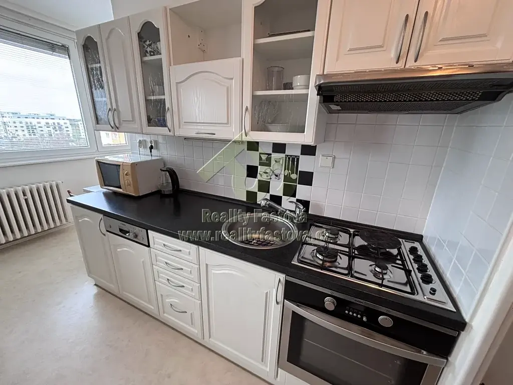 Kuchyně je do tvaru „L“ a je vybavena kuch.linkou vč.spotřebičů – plynovým sporákem s el. troubou, digestoří, myčkou, lednicí s mrazákem a mikrovlnou troubou. A včetně veškerého kuch.nádobí. V koupelně je mimo jiné i k dispozici pračka.