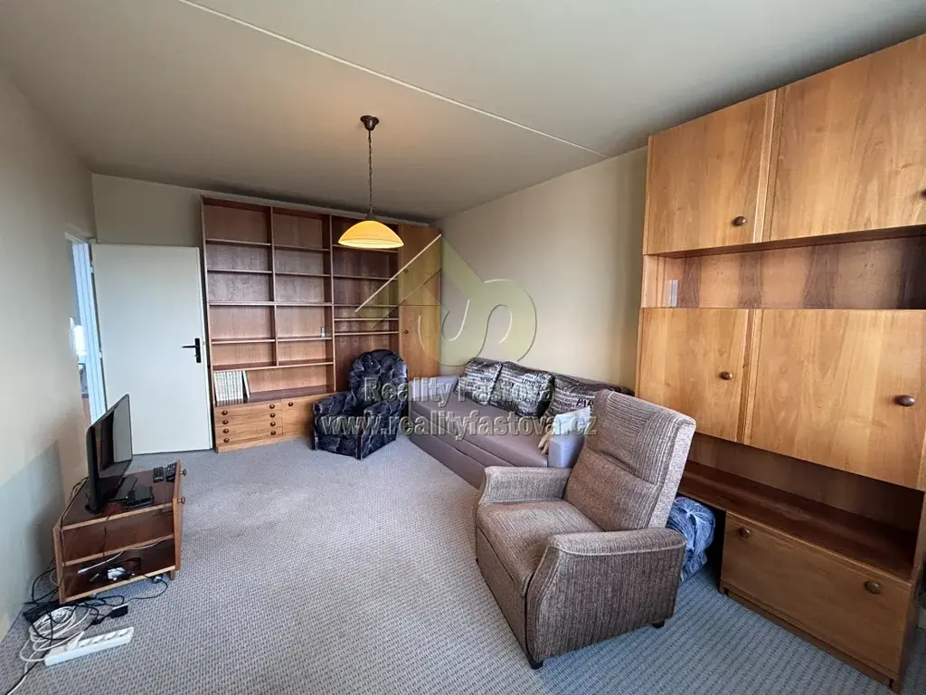 Byt je nabízen včetně vybavení dle fota. Prostorný obývací pokoj má vstup jak z předsíně, tak i z kuchyně.
