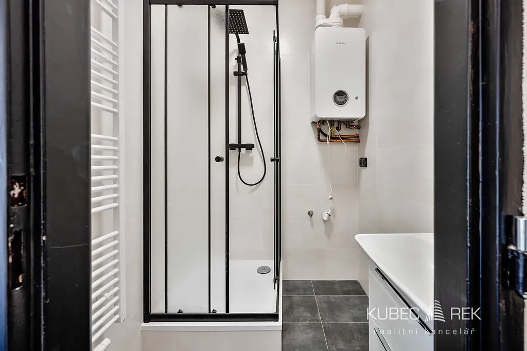 Byt prošel kompletní a velmi vkusnou rekonstrukcí, díky které je připraven k okamžitému nastěhování bez nutnosti dalších investic. Byla provedena nová elektroinstalace, instalována moderní kuchyňská linka včetně spotřebičů a celý interiér působí čistým a sjednoceným dojmem. Na podlahách v obývacím pokoji a ložnici je položeno PVC, zatímco chodba, koupelna a kuchyně jsou řešeny dlažbou v jednotném tónu, což podtrhuje celkovou harmonii prostoru. Byt je vytápěn a ohřev vody je zajištěn vlastním plynovým kotlem. K bytu náleží také sklep o výměře 13 m², který není započítán do podlahové plochy bytu, celková užitná plocha včetně sklepa tak činí 62 m².