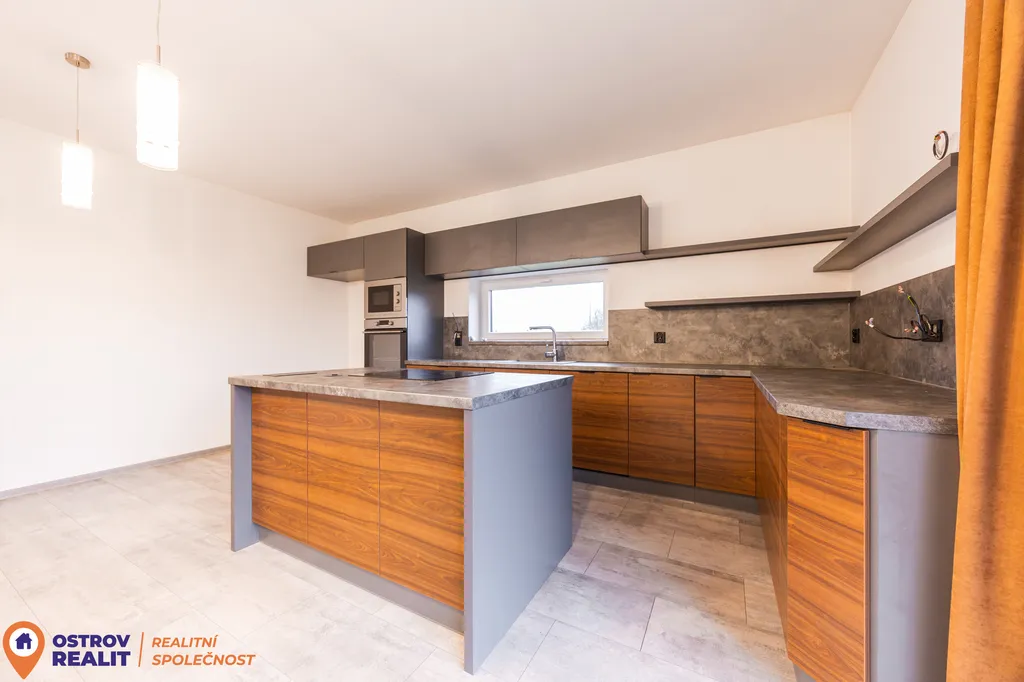 luxusní kuchyň s ostrůvkem, pokoj, koupelna, šatna, podlahové vytápění, plastová trojskla, elektrický kotel