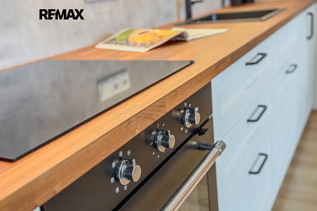 Kuchyňská linka Ikea (možno dále modifikovat) s indukční varnou deskou a externím odvětráním.