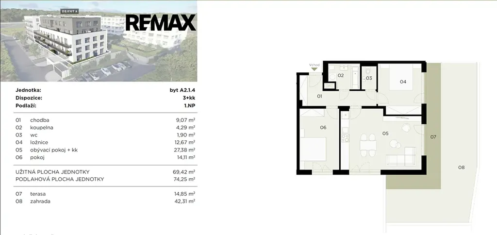 Vnitřní plocha bytu: 74,25 m²