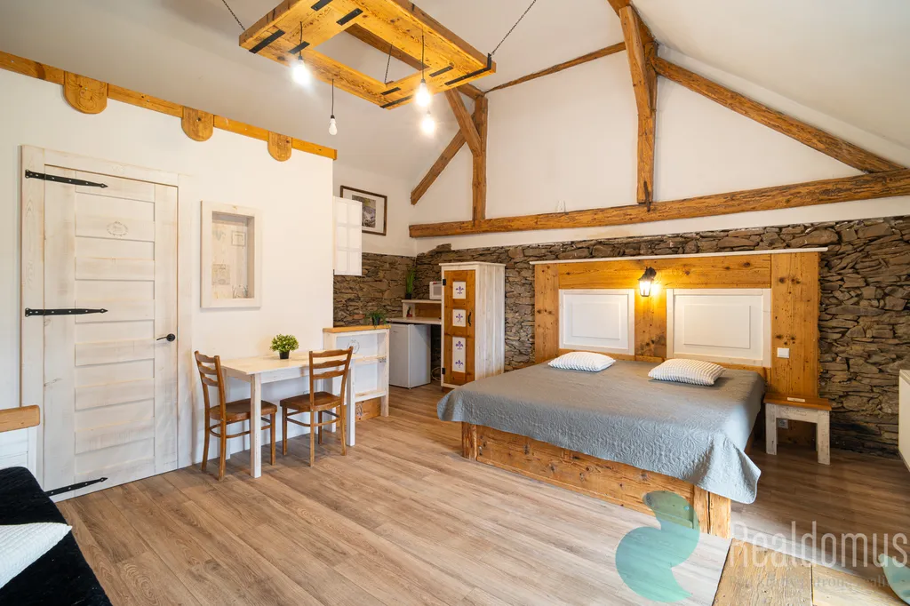 Dům je rozdělen na 5 apartmánů – 4× 1+kk a 1× 5+kk. Dispozice je ideální jak pro vlastní užívání, tak pro krátkodobé pronájmy s reálným výnosovým potenciálem.
