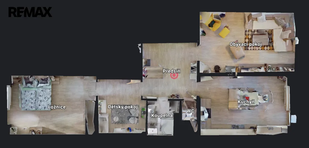 Do prostorné ložnice se dostanete přes jednu průchozí místnost, která byla využívána jako dětský pokoj, ale může také sloužit třeba jako pracovna či šatna. V ložnici se nachází šatní skříň, komoda a vstup na druhý balkon.