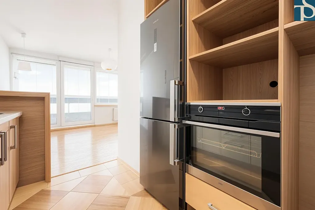 Některé byty si vás získají hned na první pohled u jiných to přijde až ve chvíli, kdy se na chvíli zastavíte, podíváte se z okna a řeknete si, tady je klid... a ten výhled. Byt se nachází v 15. patře a právě výška tomuto bytu dodává něco navíc, otevřený, ničím nerušený výhled, který se jen tak neokouká.