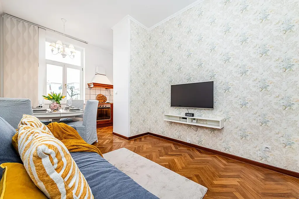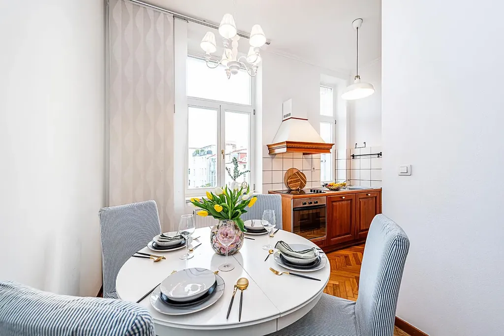 Byt je v osobním vlastnictví a pronajímá se kompletně vybavený, což umožňuje okamžité nastěhování bez nutnosti dalších investic. Nachází se v pečlivě udržovaném domě s elegantní historickou fasádou a moderním výtahem.