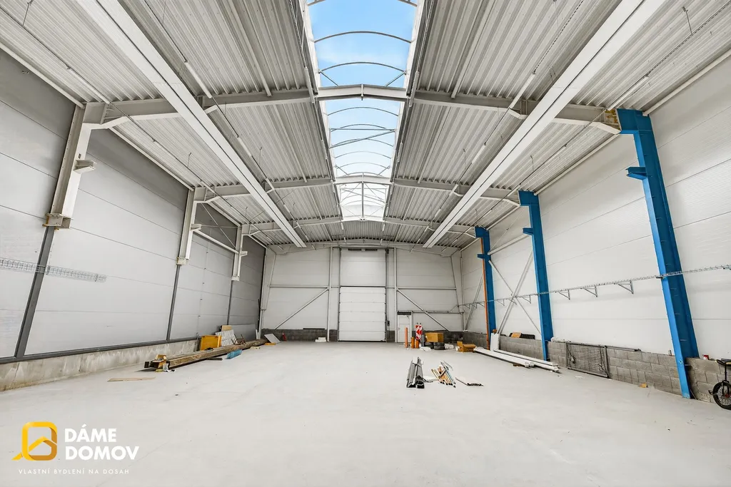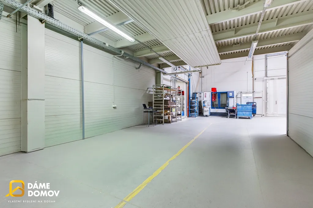 Hala disponuje výškou 6 až 8 metrů, což umožňuje maximální využití prostoru – ať už pro regálové systémy, manipulaci s materiálem nebo výrobní technologie.