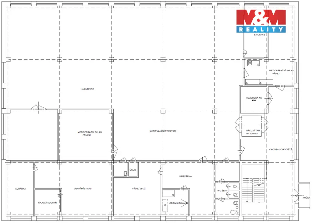 Nabízíme k pronájmu variabilní komerční prostory v průmyslovém areálu s výbornou dostupností. Celková plocha činí 778 m², z čehož centrální hala zabírá 469 m² a zbytek tvoří boční prostory pro zázemí. Objekt se nachází v prvním patře budovy, kam je zajištěn pohodlný přístup kapacitním nákladním výtahem pro snadnou manipulaci s materiálem i zbožím. Technické parametry jsou optimální pro výrobu i skladování: světlá výška ke světlům je 2,70 metru a k nosným překladům dosahuje 3,58 metru. Vytápění je řešeno efektivním horkovodem a elektrická energie má samostatné měřidlo pro přesný přehled o spotřebě. Nájemce obdrží vlastní přístup k ovládání centrální brány mobilním telefonem, což zajišťuje naprostou svobodu pohybu v režimu 24/7. Tento světlý prostor s vynikajícím osvětlením a odolnou podlahou představuje skvělou příležitost pro zavedení moderní výroby, servisního střediska nebo logistického uzlu e-shopu v profesionálním prostředí.