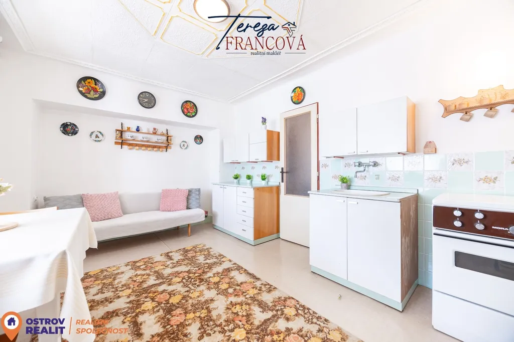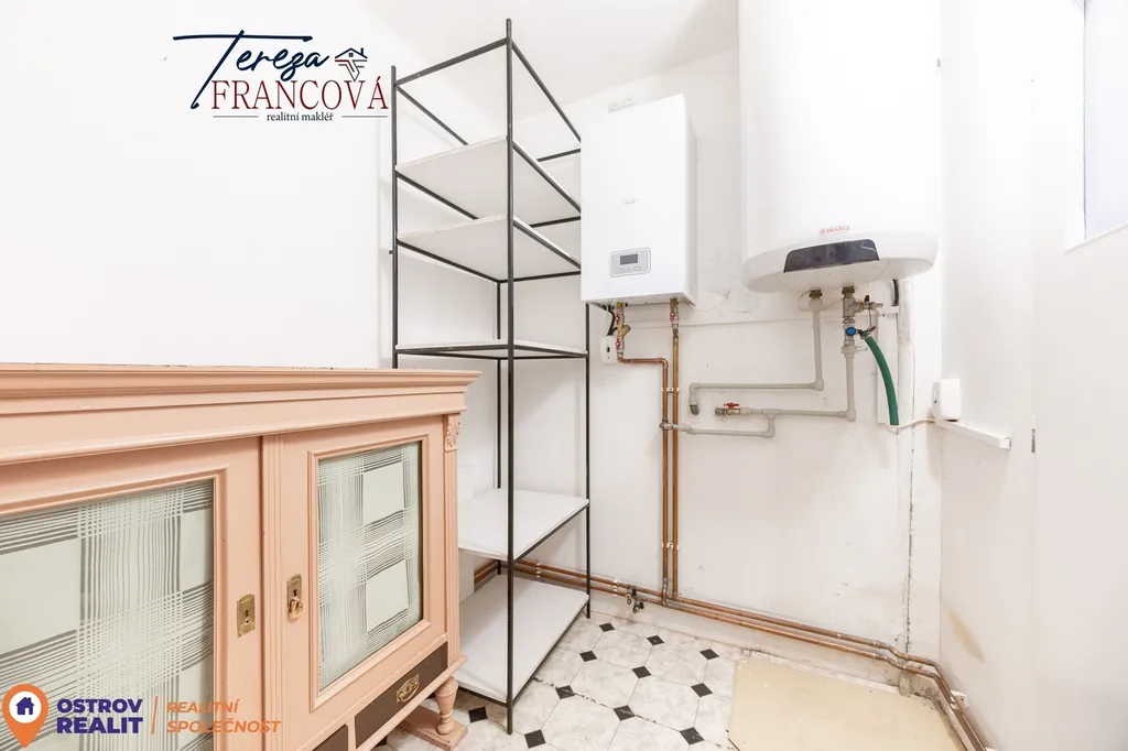 Součástí je koupelna se sprchovým koutem, samostatné WC, spíž a kotelna s vlastním vstupem z druhé strany domu.