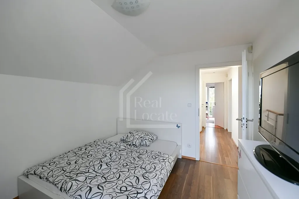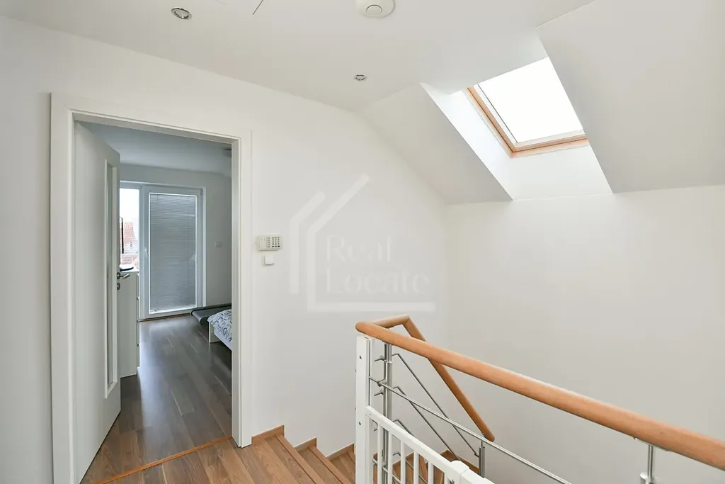 Nemovitost disponuje prostorným obývacím pokojem s kuchyňským koutem v přízemí, čtyřmi samostatnými ložnicemi, moderní koupelnou, samostatnou toaletou a dostatkem úložného prostoru. Velkým benefitem je terasa, zahrada a balkon, které poskytují příjemné prostory k odpočinku s krásným výhledem. K domu náleží také sklep a garáž pro dvě auta.