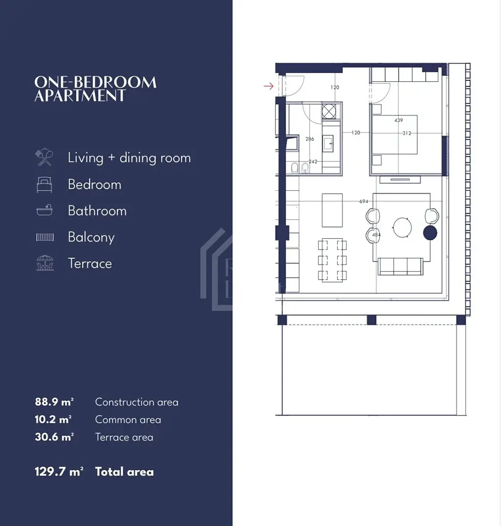 Nabízíme moderní a komfortní 1+kk apartmán v exkluzivní lokalitě Vlory, ideální pro ty, kteří hledají pohodlné bydlení s výhledem na moře. Tento prostorný byt zahrnuje obývací a jídelní část, ložnici, koupelnu, balkon a terasu, odkud si můžete vychutnat krásné výhledy na okolní přírodu a moře.