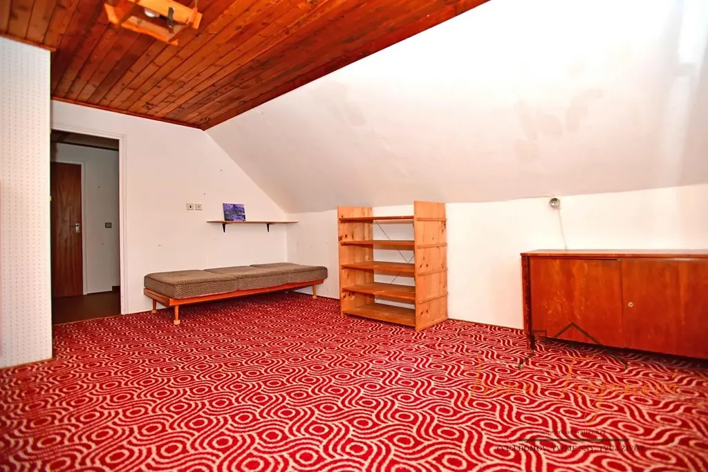 V patře (56 m2) se nachází dvě prostorné ložnice 20 m2 a 15 m2, druhé WC, hala a půdní prostor, který lze využít k dalšímu rozšíření obytné plochy nebo jako úložný prostor.