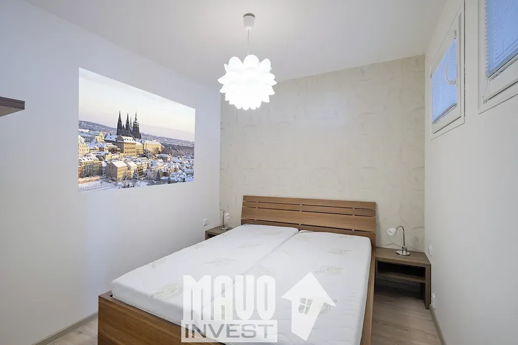 Dispozice bytu je prakticky řešená – dominantu tvoří světlý obývací pokoj s kuchyňským koutem a jídelní částí. Kuchyň je plně vybavená a díky barovému pultu přirozeně odděluje pracovní a obytnou zónu. Interiér působí čistě, moderně a je připravený k okamžitému nastěhování bez nutnosti dalších investic.