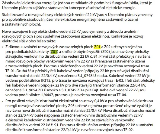 Nad pozemky vede nadzemní elektrické vedení 22kV + trafo do 200 m. V obci je v plánu výstavba kanalizace.