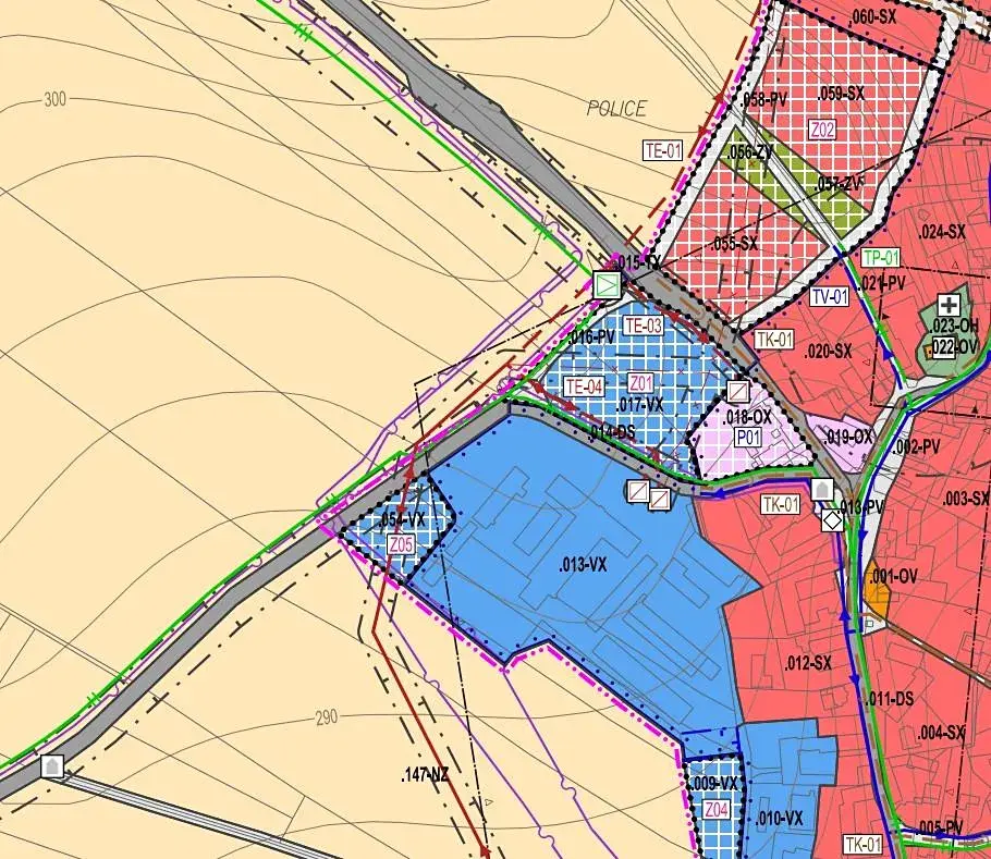 Dle platného územního plánu obce se jedná o lokalitu "Za hostincem" (rozvojová plocha ZO1)- Plochy výroby a skladování.