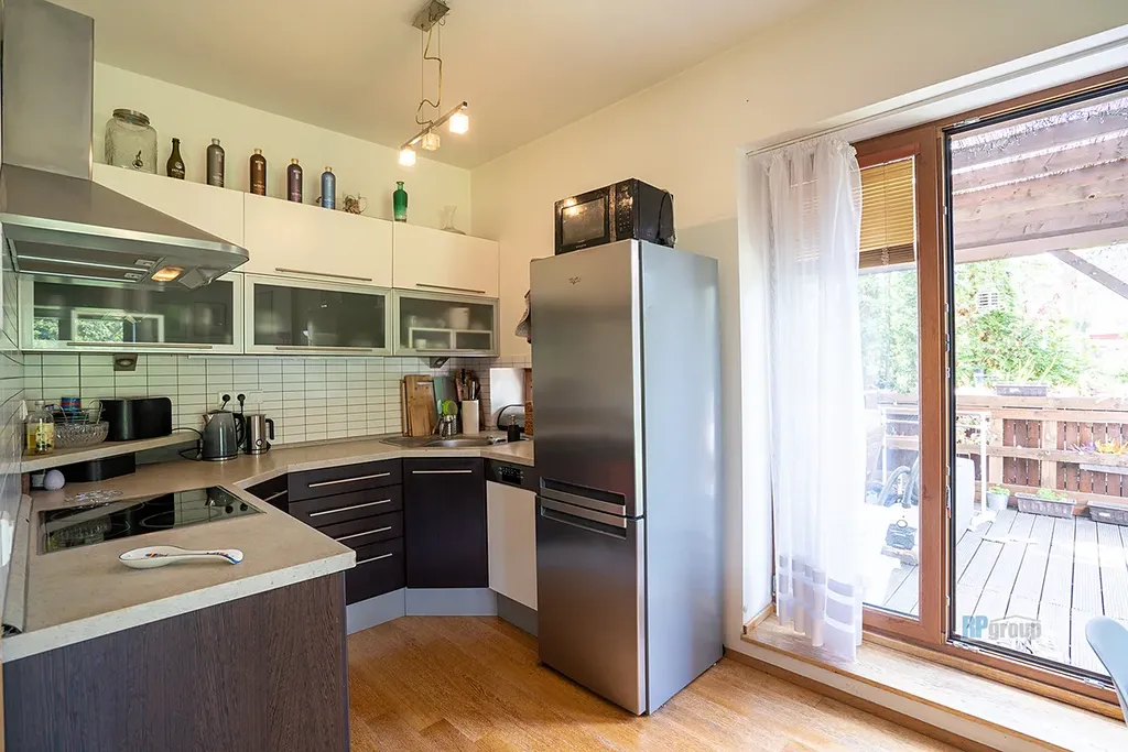 V nabídce se nám po dlouhé době objevila zajímavá nemovitost se zahrádkou. Už na první dobrou je jasné koho tato nemovitost hledá. Někoho, kdo zahradu o velikosti 180 m2 ocení a to nejen tím, že ji bude užívat, ale také se o ni starat. Dá se tu pěstovat cokoli a odměnou můžou být čerstvé produkty přímo na stůl. Stoly tu budou pravděpodobně dva. Jeden na kryté terase a druhý v prostoru obýváku s kuchyňským koutem. Kuchyňský kout je vybaven myčkou, sklokeramickou varnou deskou, troubou a základním úložným prostorem. Obývací pokoj má dvě francouzská okna jedny na jih a druhé na západ. Taktéž okna na západ má pokoj ložnice. Chodba pak spojuje vstupní část se společnou koupelnou a toaletou. V koupelně je vana a prostor na pračku se sušičkou. Tady je podlahové topení. Ostatní teplo v bytě zajišťují radiátory. Prostory bytu jsou vymalované bílou barvou a byt je tedy mnohem světlejší než na fotkách, kde si nájemník po dohodě s majitelem polepil stěny tapetou. Parkování je možné u domu v dostatečném množství. Zbuzany jsou ideální polohou k centru Prahy a vlakem, který je z bytu do dvou minut pěšky, se dostanete na Smíchovské nádraží za 16 minut. Taktéž dálnice směr D5, D6, D7 nebo letiště Václava Havla je v bezvadné vzdálenosti a nemusíte projíždět celou Prahou. Ve Zbuzanech je k dispozici funkční obchod a zelenina. Nově otevřené bistro s pizzou a rychlým občerstvením. 2 km pěšky je pak nově otevřený Retail park Jinočany s KFC, Billa, Zoo marketem, atd. Byt je k dispozici od 15. dubna nebo po dohodě. V případě zájmu neváhejte kontaktovat makléře.