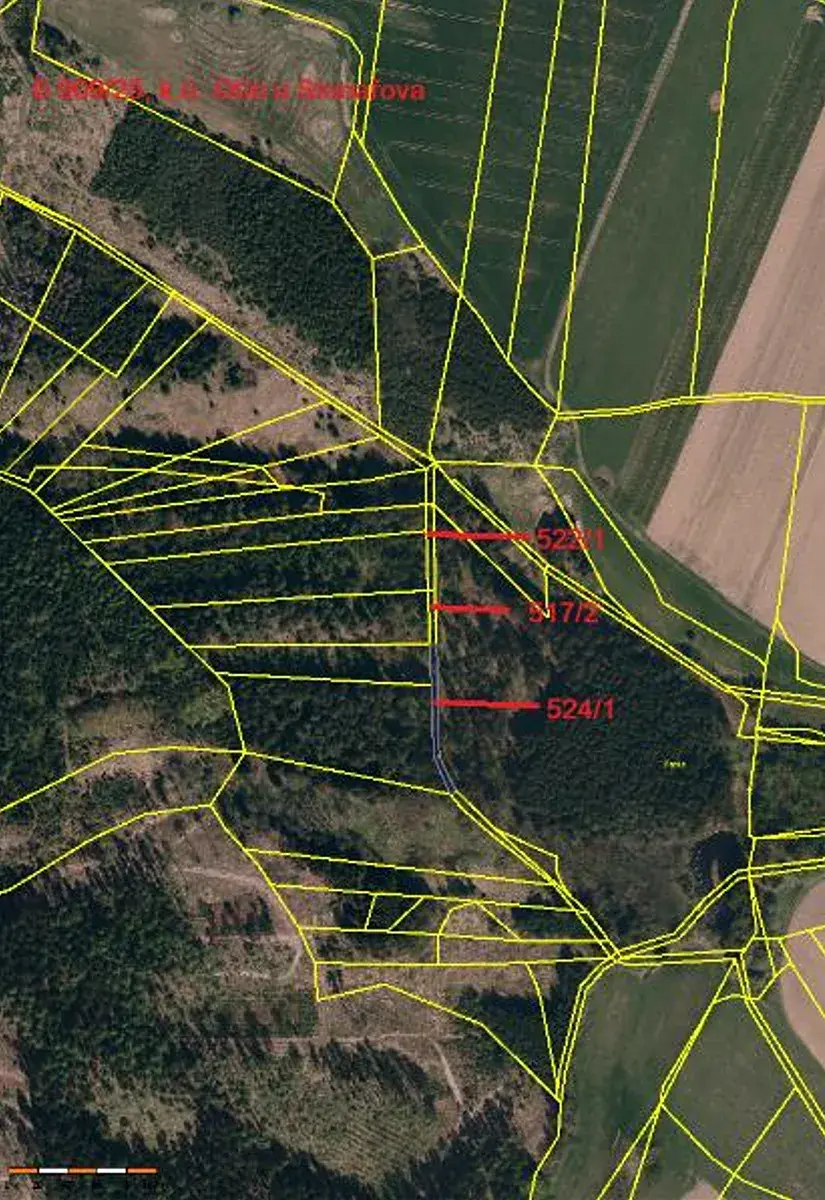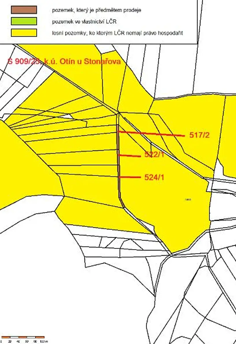 Jedná se o prodej 3 lesních pozemků parc. č. 517/2 o výměře 291 m2, parc. č. 522/1 o výměře 169 m2 a parc. č. 524/1 o výměře 369 m2, nacházejících se západně od obce Stonařov, vedle bývalé cesty v komplexu privátních lesů, úzkého protáhlého tvaru, porost byl vytěžen a na pozemcích zůstává druhá etáž mladého porostu.