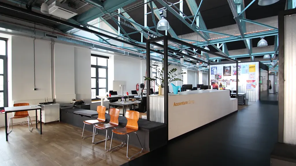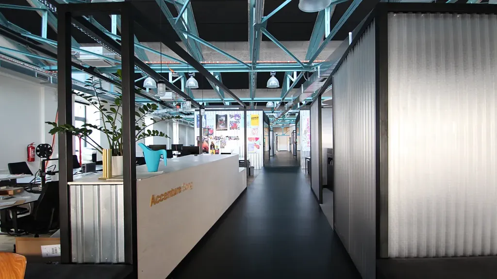 Prostor je členěn dle potřeb jednotlivých týmů a v otevřené hale naleznete samostatná zákoutí. Hlavním motivem je úhlopříčná osa, která funguje jako koridor a ulice, po jejíž stranách se postupně otevírají zasedačky, meeting boxy, kuchyně, odpočinková lehátka a mnoho dalších elementů. Tato osa, začínající u hlavního vstupu a končící na otevřené terase, dává celému prostoru dynamiku.
