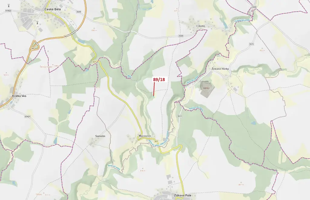 Trvalý travní porost o výměře 212 m2, parcelní číslo 89/18, podíl 1/1, katastrální území Macourov, obec Žižkovo Pole, obec s rozšířenou působností Havlíčkův Brod, okres Havlíčkův Brod, Kraj Vysočina.