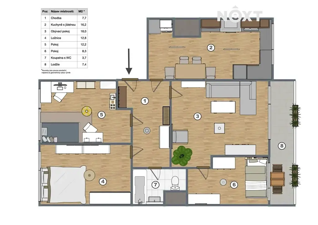 Pronájem prostorného bytu 4+1 se zasklenou lodžií (85 m²) – ideální pro větší rodinu