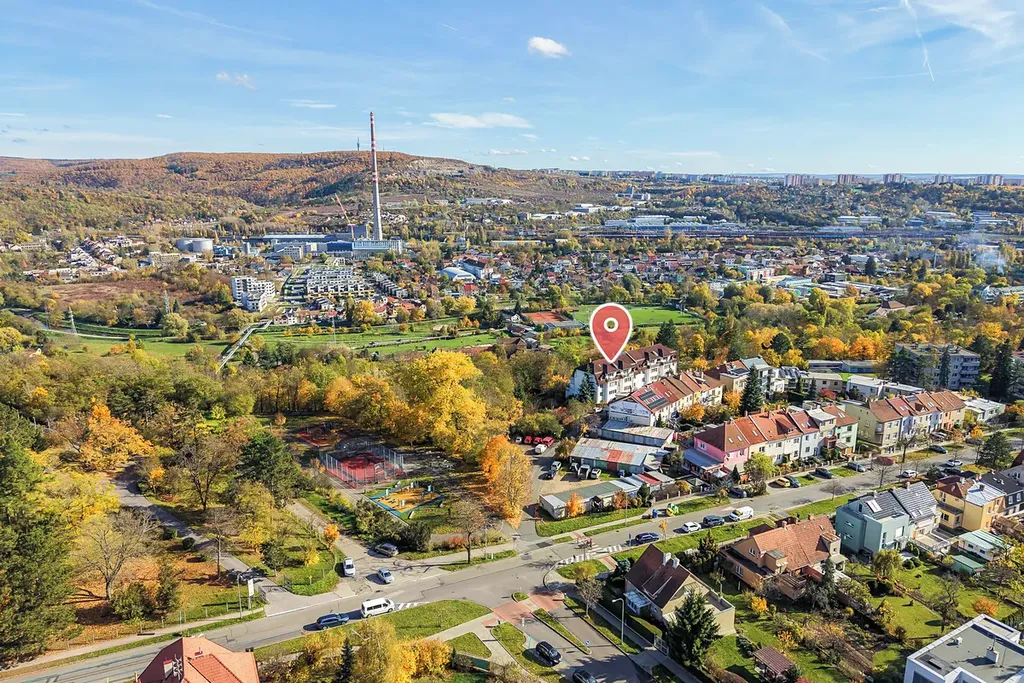 V okolí se nachází lesoparky, běžecké a cyklostezky, v pěší vzdálenosti jsou školky, školy, obchody a 100m od domu se nachází krásné dětské hřiště, sportoviště na míčové hry a workout a vyhlášená restaurace.