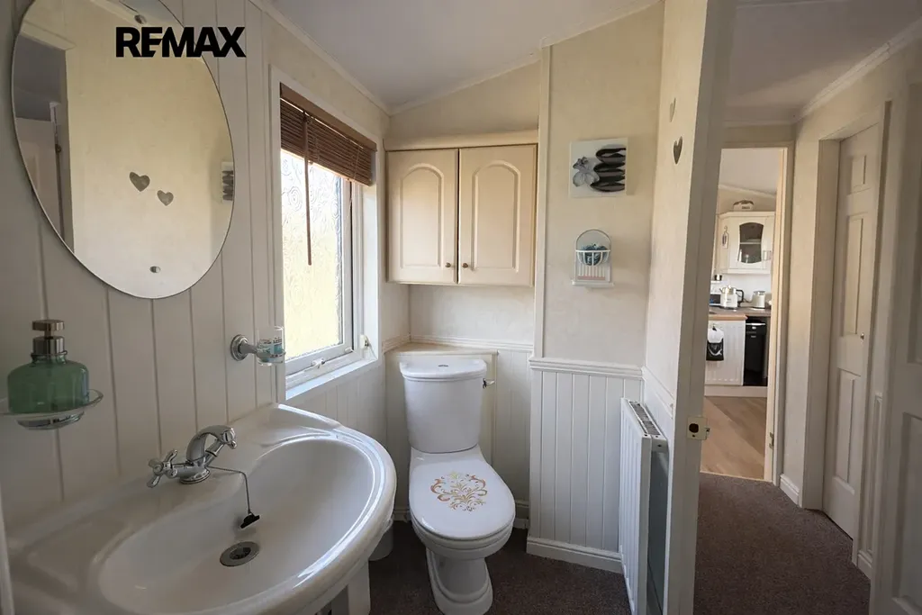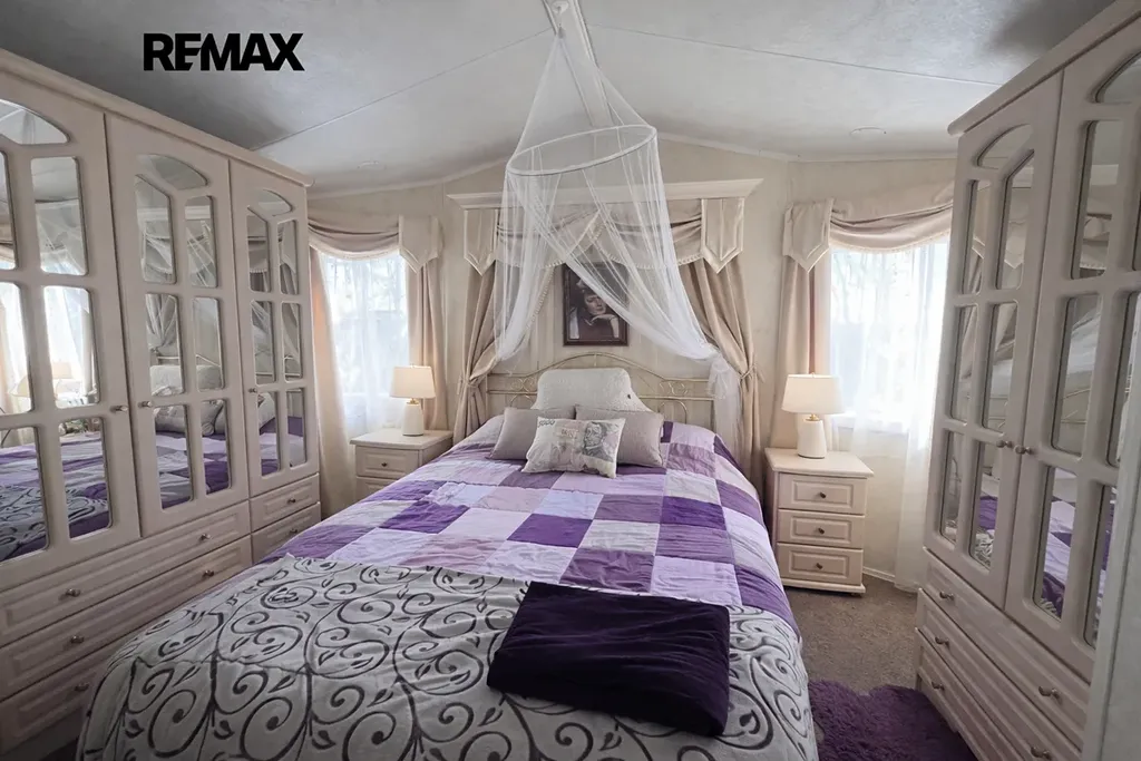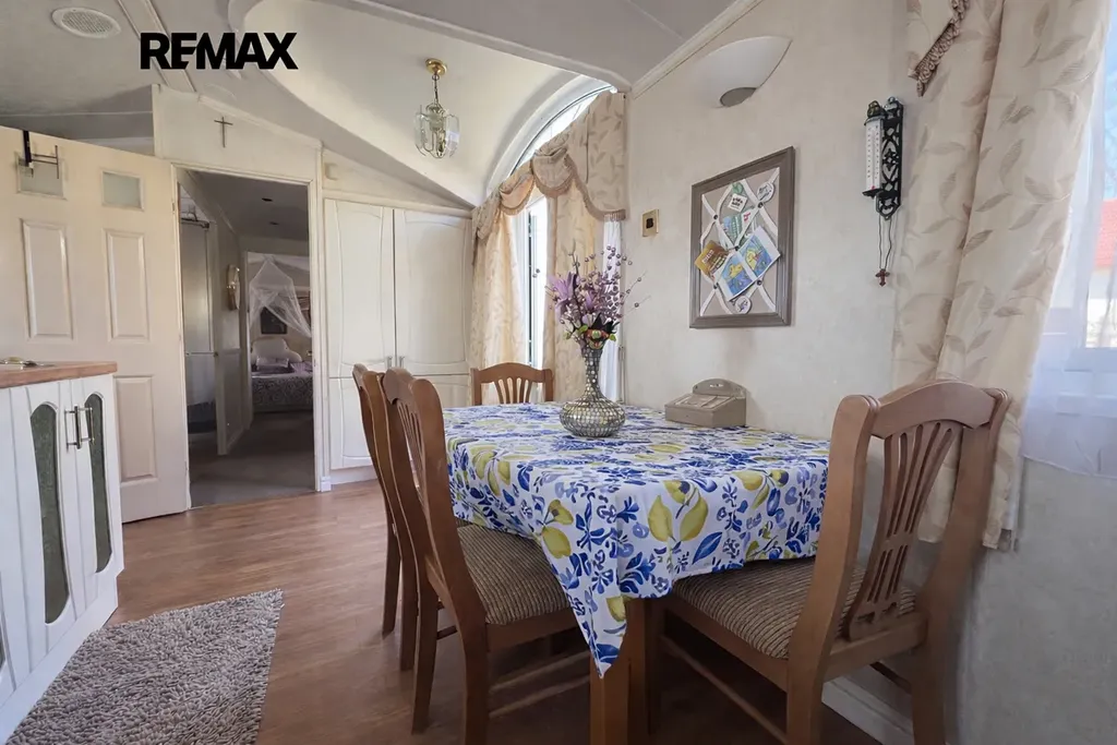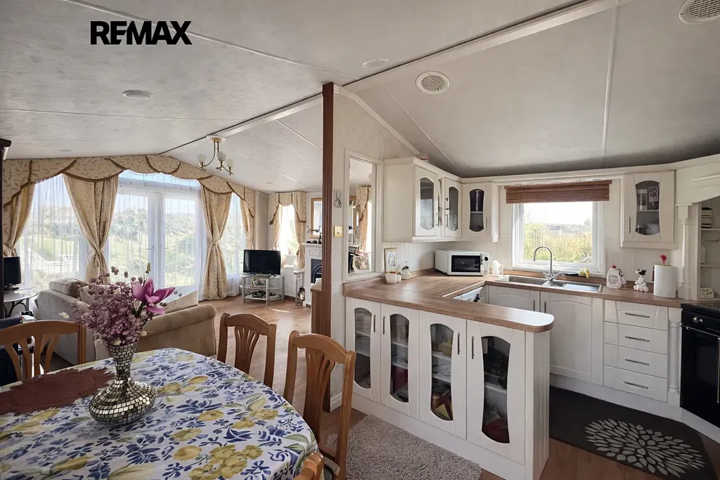 Součástí prodeje je obytný mobilheim značky Willerby Holiday Homes, model The Vogue o rozměrech 14 × 4 metry, přibližně 6 let starý. Poskytuje komfortní zázemí pro rekreační pobyt a je připraven k okamžitému užívání.