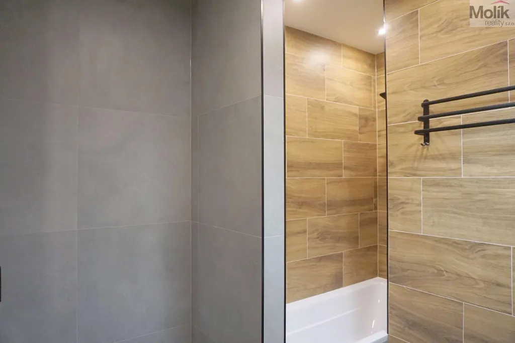 Byt je po kompletní, zdařilé rekonstrukci - nová vyzděná koupelna s vanou, WC se zápustným modulem, keramické obklady a dlažba, umyvadlo zabudované ve skříňce, příprava pračka sušička atd.