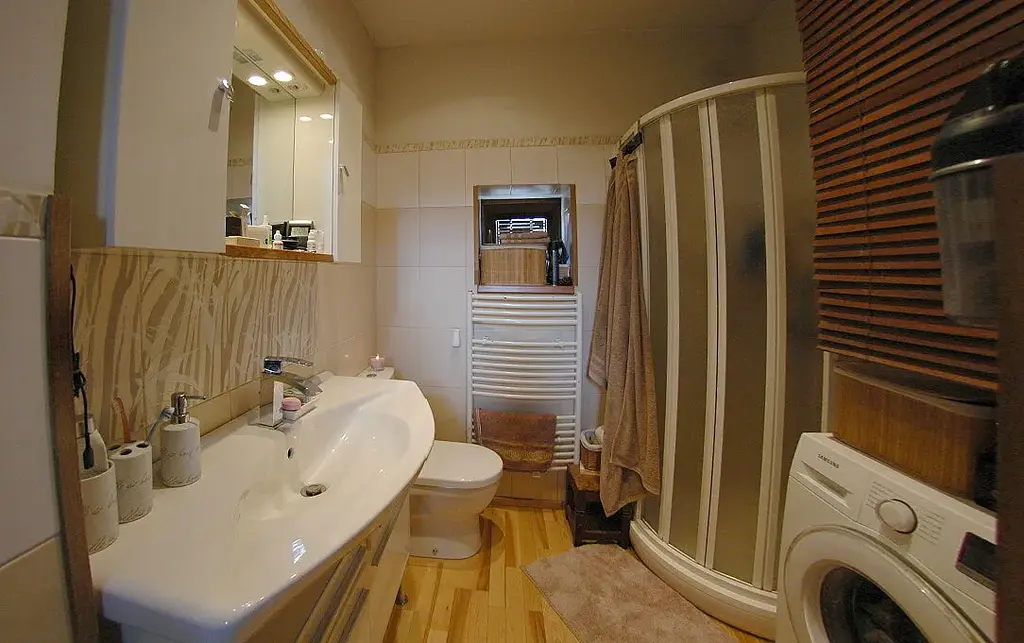 Atmosféra, která vás obejme: Vnitřní prostor byl navržen pro maximální útulnost a trvanlivost. Zapomeňte na levné imitace. Dominuje zde dřevo – na pohled hřejivé, celodřevěné jasanové plovoucí podlahy (které můžete opakovaně renovovat) a masivní dubové schodiště. V obývacím pokoji vás čekají krbová kamna (8 kW), která v zimě vykouzlí neopakovatelnou pohodu a hravě vytopí celý dům.