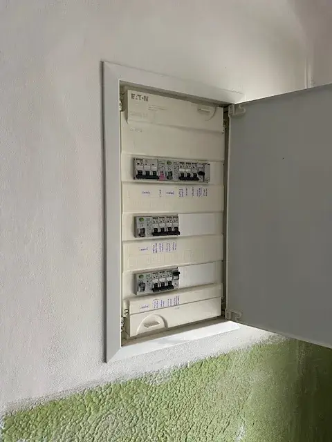 V části domu jsou nové rozvody elektřiny, dále vodovodní rozvody a odpad. Dům má nově zrekonstruovanou koupelnu a přípravu pro kuchyňskou linku. Jinak je dům v původním, ale udržovaném stavu. Dům je připojen na elektřinu, plyn, obecní vodovod a obecní kanalizaci. Plyn se v současné době nevyužívá, ale nachází se tam plynový kotel. Topení je řešeno krbovými kamny v kuchyni případně kotlem na tuhá paliva, ohřev vody el. bojlerem.