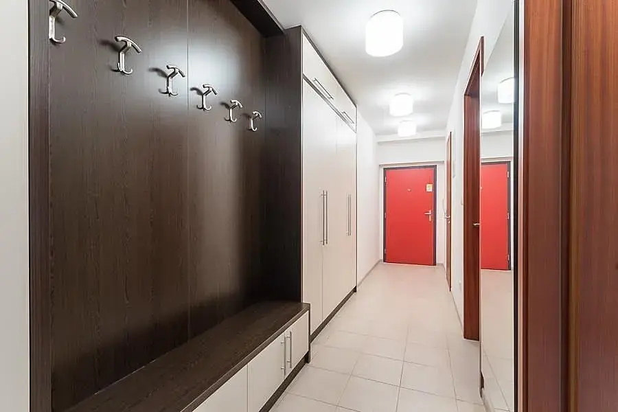 Byt sestává z prostorného obývacího pokoje s otevřeným prostorem spojeným s jídelnou a kuchyňským koutem (včetně drobného vybavení jako nádobí, příbory, kávovar apod.), ložnice, koupelny se sprchovým koutem, pračkou, sušičkou a samostatného WC a předsíně s úložnými prostory. Interiér obývacího pokoje je zařízen moderním designovým nábytkem, pohodlnou rozkládací sedací soupravou, vinotékou a pracovním stolem. Kvalitní dřevěná podlaha s podlahovým topením, televize se satelitem i rychlé wi-fi připojení k internetu samozřejmostí a vše zahrnuto již v ceně nájmu. Byty v nejvyšších patrech jsou vybaveny klimatizací.