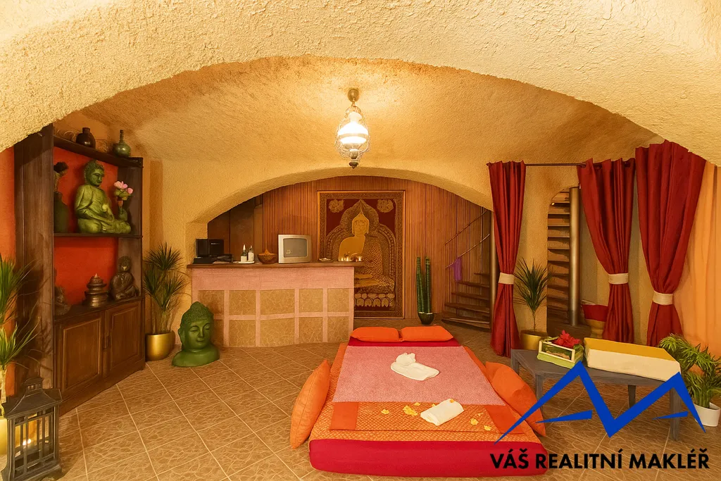 Součástí nabídky jsou také tři místnosti v podzemním podlaží, které byly dříve využívány jako vinárna a sauna s ochlazujícím bazénkem. Tento prostor otevírá skvělou příležitost pro vybudování thajských masáží či wellness studia s příjemným zázemím pro klienty.