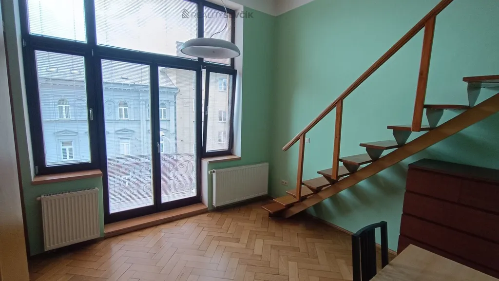 Nabízíme k pronájmu krásný slunný byt 2+kk s balkónem o podlahové ploše 62 m2 v centru Českých Budějovic. Byt se nachází ve 2. patře činžovního domu na křižovatce ulic Žižkova a Čechova. Byt se stává ze vstupní chodby, koupelny s rohovou vanou a WC, (v koupelně nachází plynové kotel a pračka), velkého obývacího pokoje s kuchyňským koutem a jídelnou (lednice s mrazákem, digestoř, sklokeramická deska, trouba, myčka), a dále pak ze samostatného pokoje, který nyní slouží jako pracovna, ze které je vstup po schodech do vybudovaného prostoru určeného pro spaní, z pracovny je přístup na balkón. Okna bytu jsou orientována na JZ. Celý byt je kompletně zařízení včetně nábytku a elektrospotřebičů (viz. fotografie). K bytu náleží sklep o výměře 13 m2 a dále pak společná chodba v patře, kde jsou umístěny dvě velké skříně sloužící jako botník. V bytě jsou nová dřevěná okna, na podlahách původní parkety a v předsíni a koupelně dlažba. Byt má vlastní plynový kotel na ohřev teplé vody a na vytápění. Energie u tohoto bytu se pohybují okolo 5tis.Kč za měsíc. Byt je volný od 1.5.2026. Majitelé vyžadují jistotu ve výši 30tis.Kč a nepřejí si v bytě domácí mazlíčky. Bližší informace vám rádi sdělíme v naší RK.