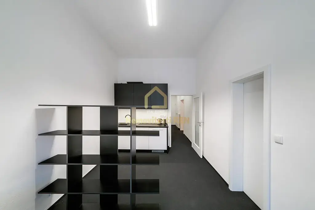 Dispozice prostor je prakticky řešena pro administrativní využití a nabízí dvě samostatné kanceláře, zasedací místnost, vstupní část vhodnou jako recepci, kuchyňku a sociální zázemí se sprchovým koutem. Součástí prostor je také sklep, který poskytuje dostatek úložného místa pro archiv nebo materiál.