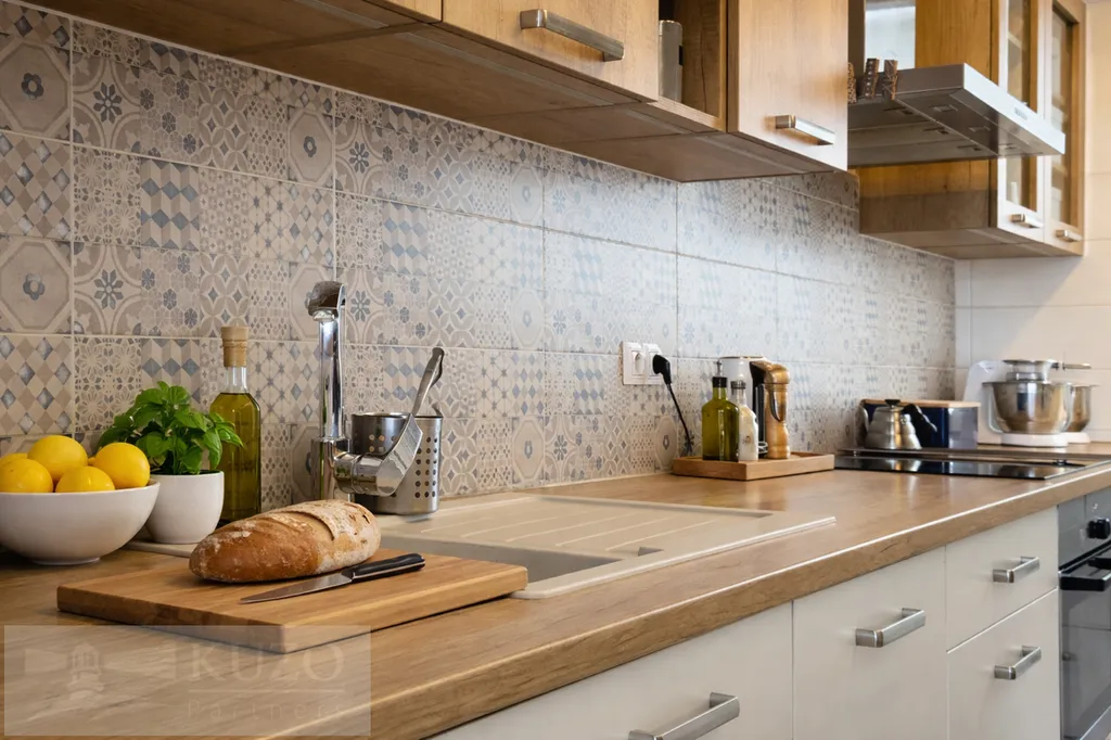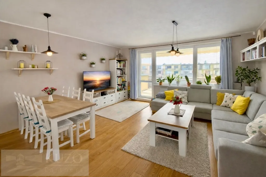 Byt se nachází v prvním podlaží, jedná se o zvýšené přízemí, a hlavní obytné místnosti jsou orientovány na východ a západ. Součástí prodeje jsou vestavěné skříně v předsíni a koupelně a kompletní kuchyňská linka včetně spotřebičů, konkrétně myčky, lednice, pračky, trouby a indukční varné desky, digestoře.