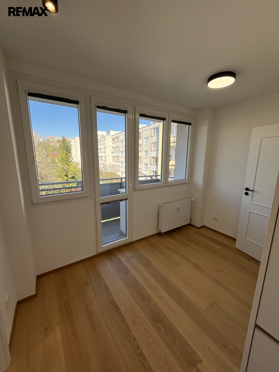 Dispozice bytu nabízí neprůchozí pokoje a prostornou šatnu, která poskytuje dostatek úložného prostoru. K dispozici je samostatné WC a koupelna se sprchovým koutem. Byt se pronajímá bez zařízení.