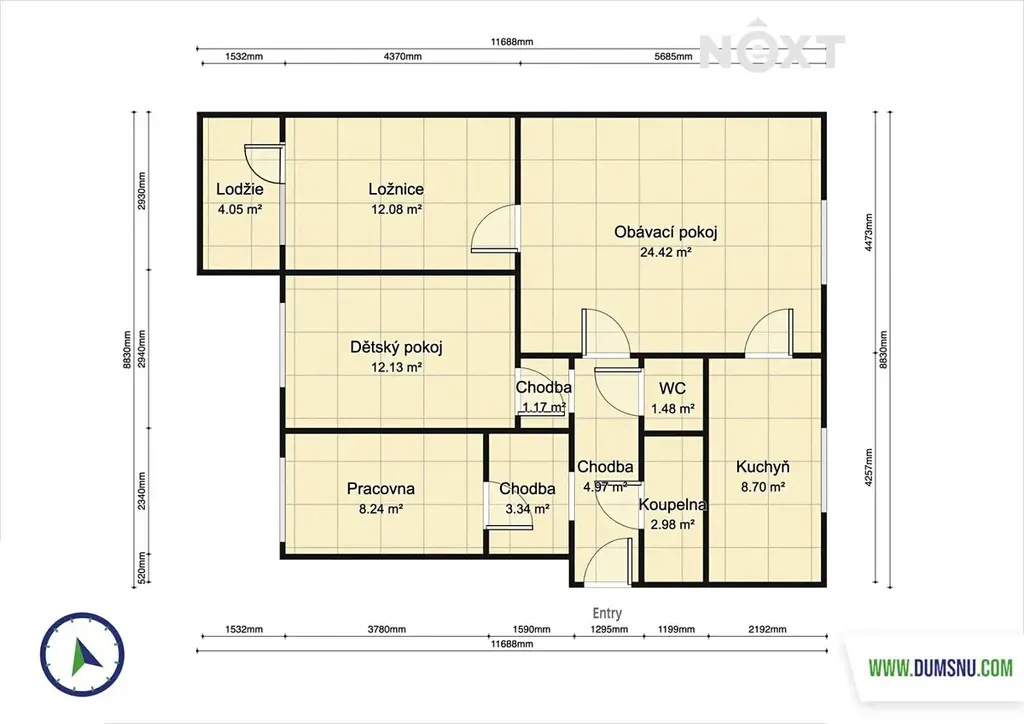 Prodej bytu 4+1, Vápenná, 83 m2