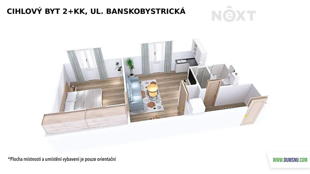 Byt v osobním vlastnictví o velikosti 2+kk s výměrou 44 m2 se nachází se v 3.NP cihlového domu, který je zrekonstruovaný, stejně jako samotný byt.