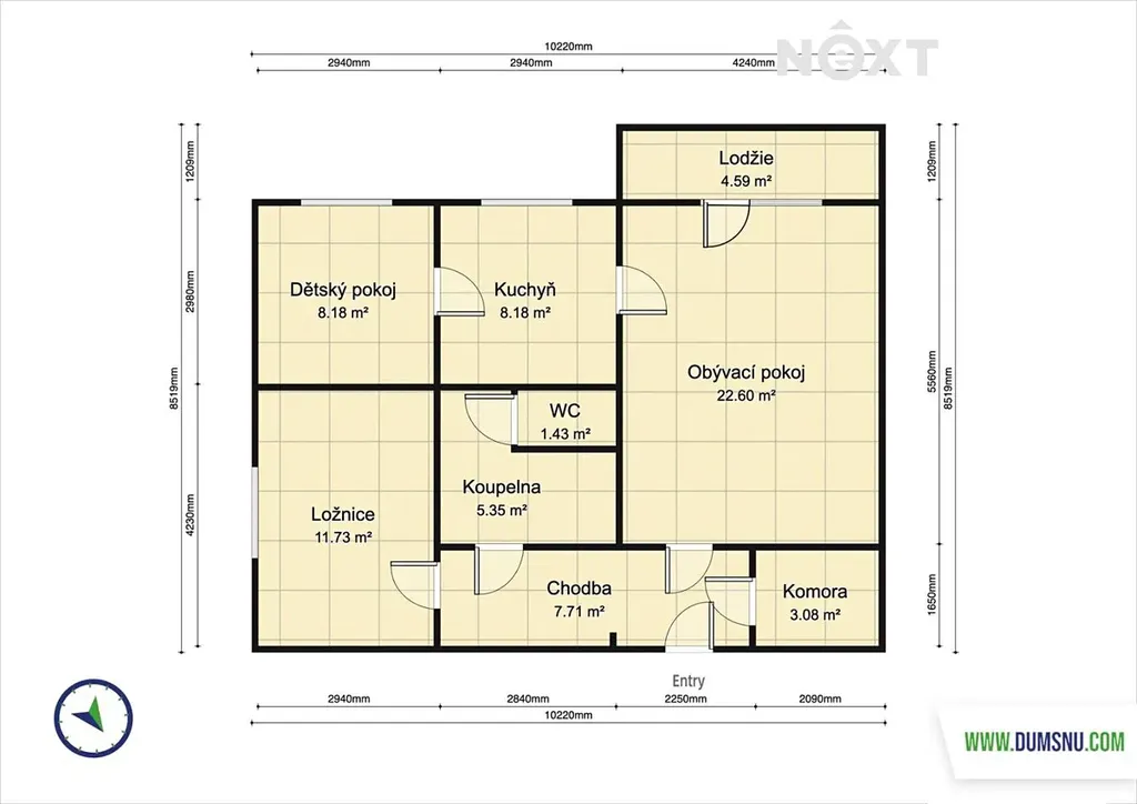 Dispozice bytu je praktická a velmi příjemná pro rodinný život. Obývací pokoj, ložnice i další pokoj