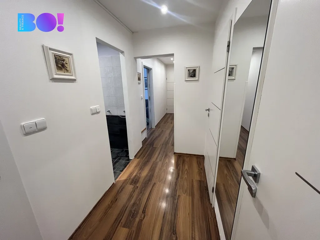 Byt se nachází v 5. patře a prošel kompletní rekonstrukcí, díky které nabízí komfortní a moderní bydlení. Dispozice zahrnuje světlý obývací pokoj, samostatnou kuchyň, tři ložnice, koupelnu s vanou, samostatné WC, prostornou chodbu a praktickou komoru. Velkou výhodou je také prostorný balkón, ideální pro odpočinek.